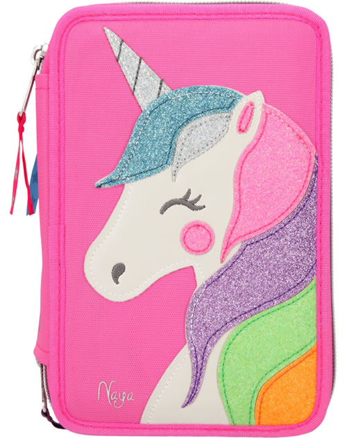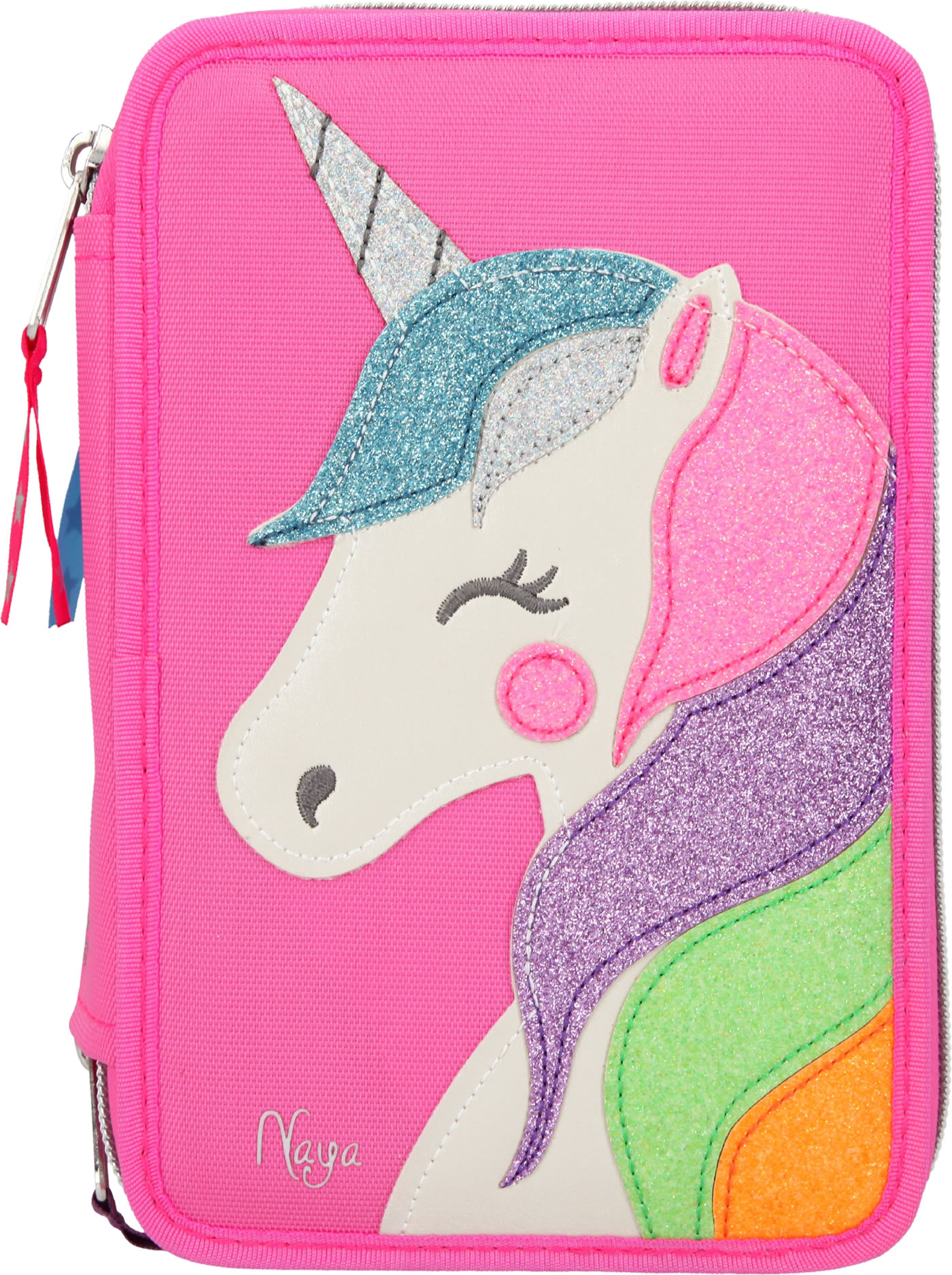 Auf der Vorderseite befindet sich das Einhorn Naya, dessen Mähne in bunten Farben glitzert.