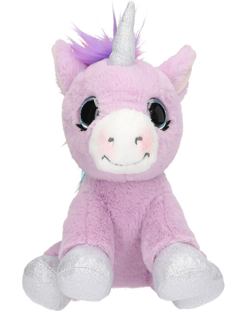 Kuschelig, magisch und so süß: Das lilafarbene Plüsch-Einhorn von Ylvi hat supersoftes Fell, eine strubbelige Mähne in Regenbogenfarben,