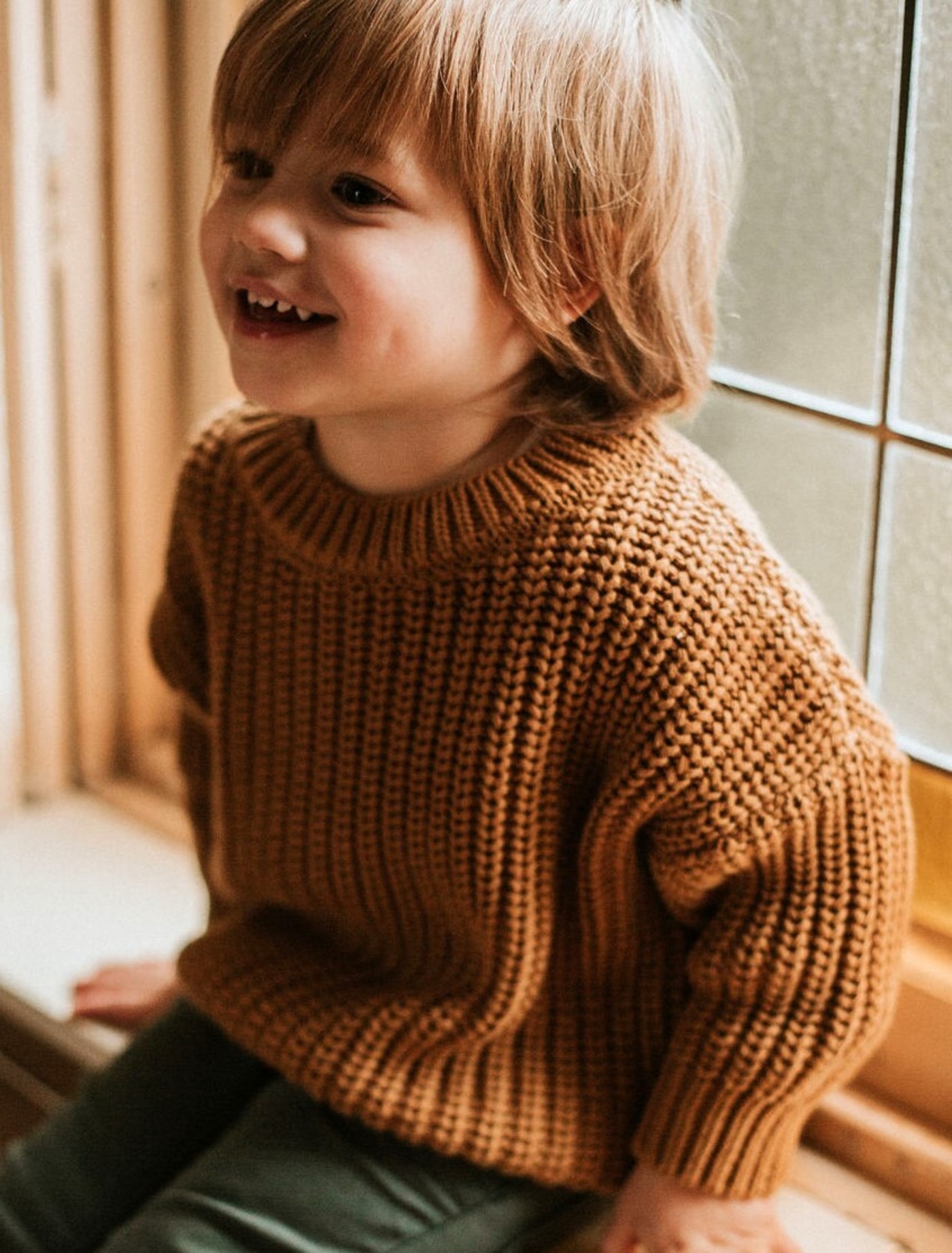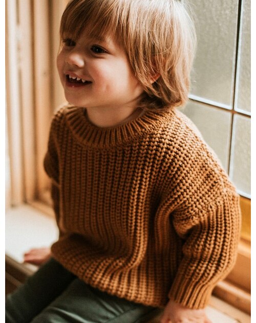 Yuki Kinder-Strickpullover Chunky aus Bio-Baumwolle - Gold