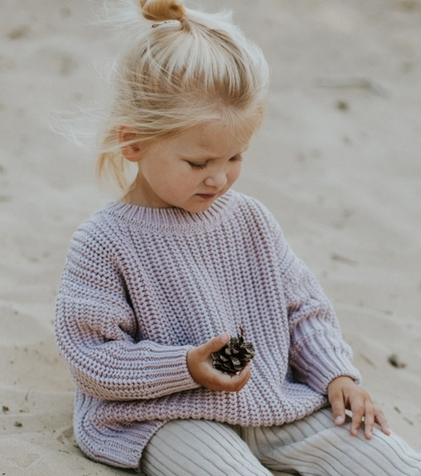 Yuki Kinder-Strickpullover Chunky aus Bio-Baumwolle - Lilac