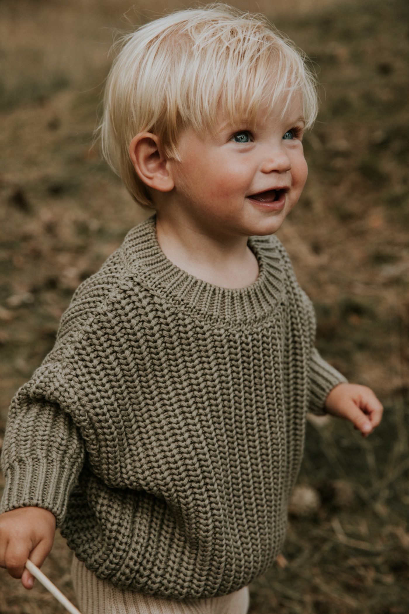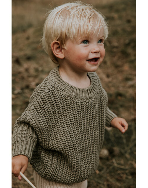 Yuki Kinder-Strickpullover Chunky aus Bio-Baumwolle - Sage