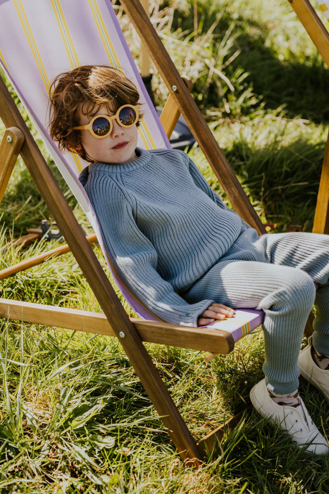 Yuki Kids-Strickpullover 'Big Rib' aus Bio-Baumwolle - Whale Blue