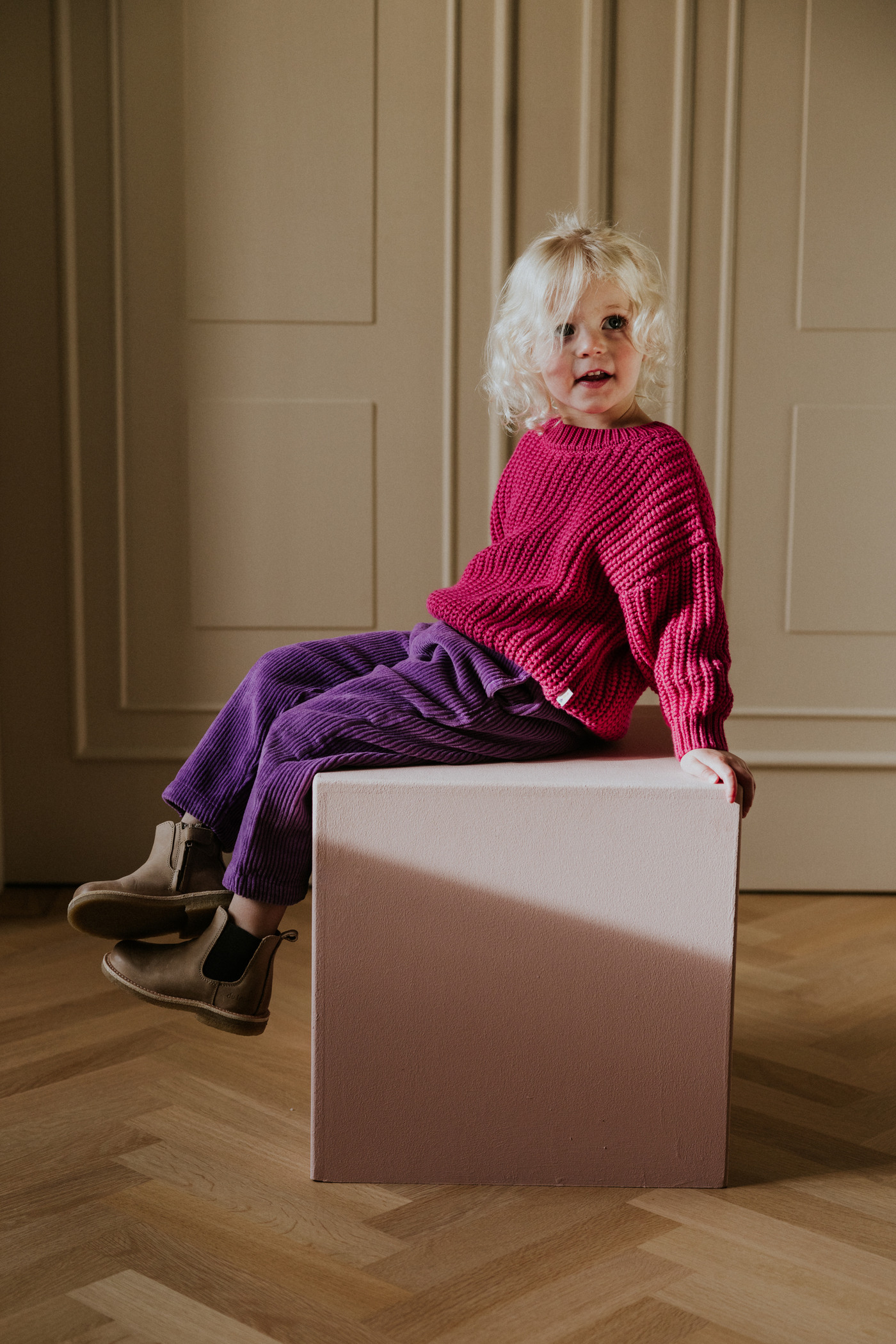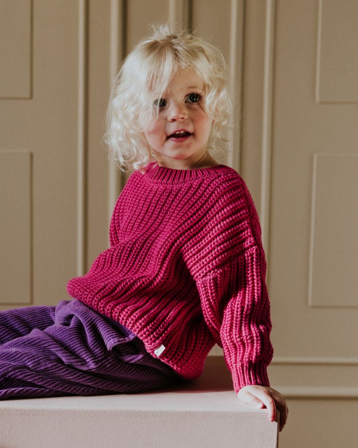 Yuki Kinder-Strickpullover Chunky aus Bio-Baumwolle - Fuchsia